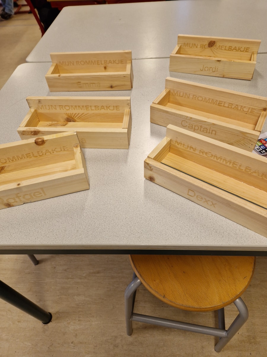 In samenwerking met het Martinuscollege hebben we afgelopen week rommelbakjes gemaakt! Wij krijgen de leskisten, met materiaal, aangeboden van het Martinus College en leren daardoor op een andere manier met hout werken!